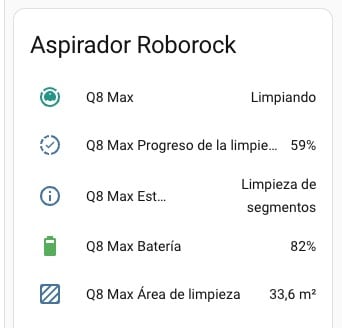 El comportamiento era muy claro y pasaba todos los días después de la limpieza programada: En Home Assistant la entidad del aspirador pasaba a Unavailable y no había forma de controlarlo desde ahí. Además, no es que cuando saliera el aspirador de nuevo se volviera a conectar, era una especie de sueño eterno y solo se volvía a conectar si reiniciábamos Home Assistant o la integración de Roborock. Sin embargo, en la app oficial de Roborock se podía ver el Roborock Q8 Max perfectamente, lanzar limpiezas, consultar el mapa, etc.